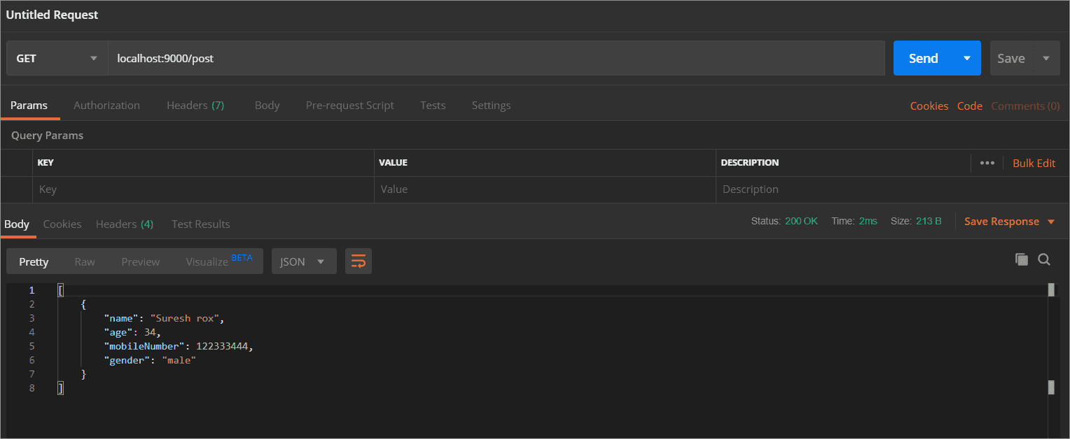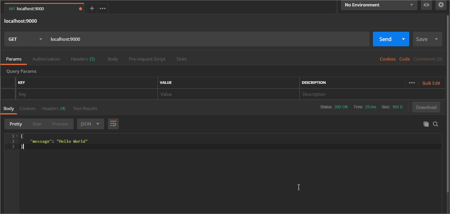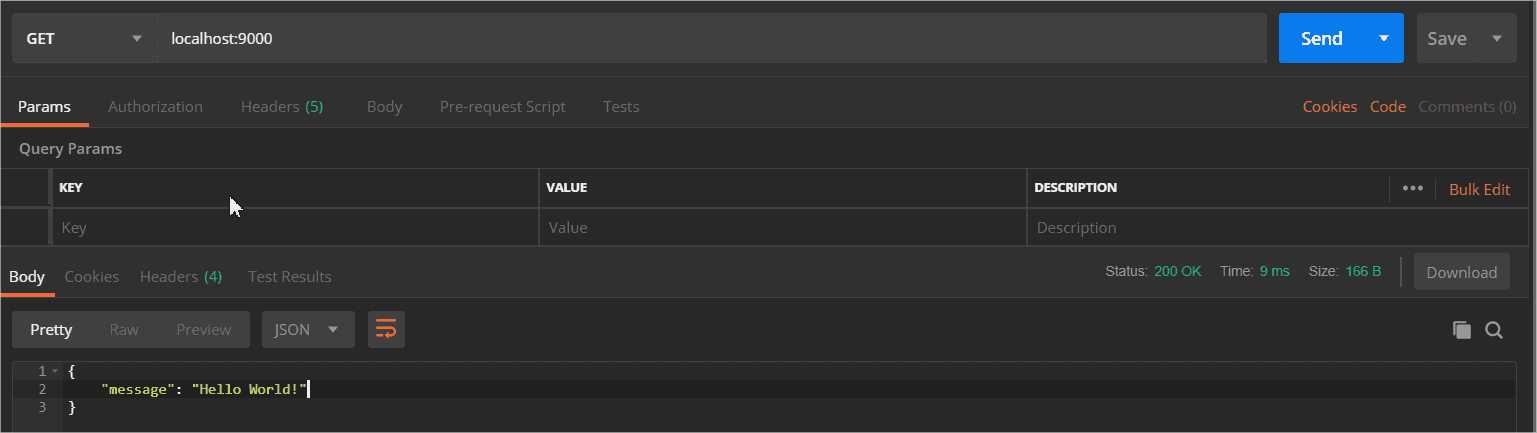 we can hit the URL http://localhost:9000 in postman. let's see the response.