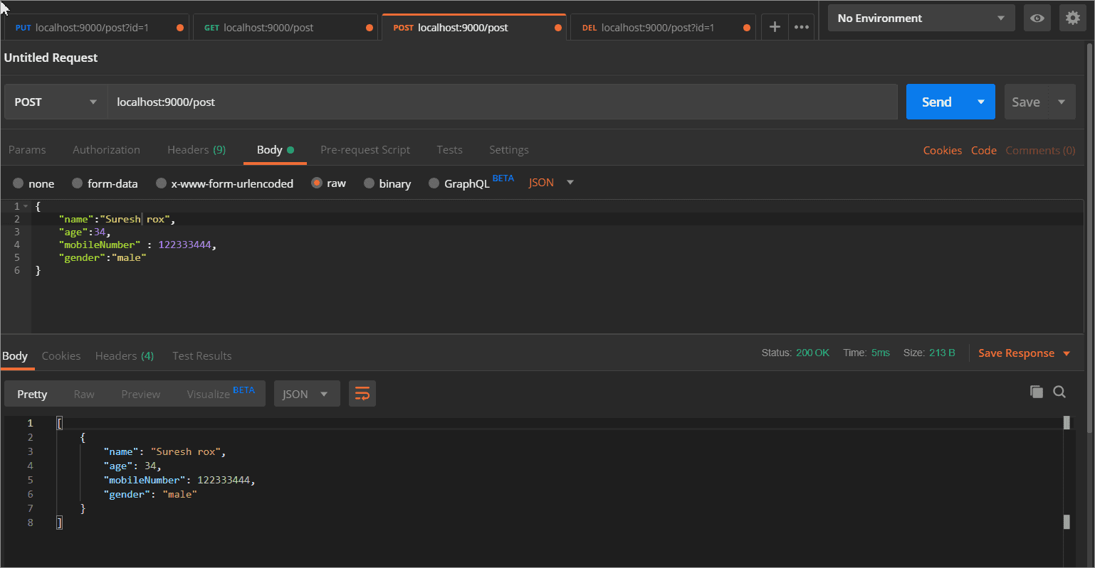 Now let’s create a user contact object for that we are going to use the post Http method. In the switch case of our createServer function, we need to make a case for post request.