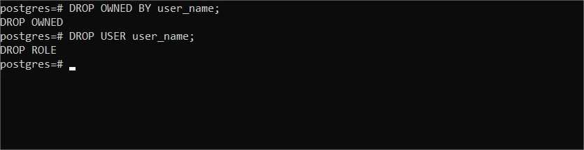 We can also delete users from the database but before deleting a user we have to delete that user has owned (tables, Sequences, and functions, etc).