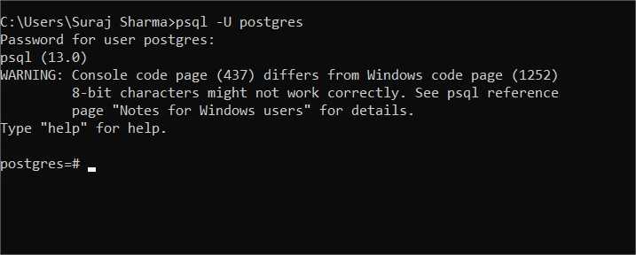 we can run psql -U postgres to login in Postgres database as a postgres user which we had set up in installing the procedure.