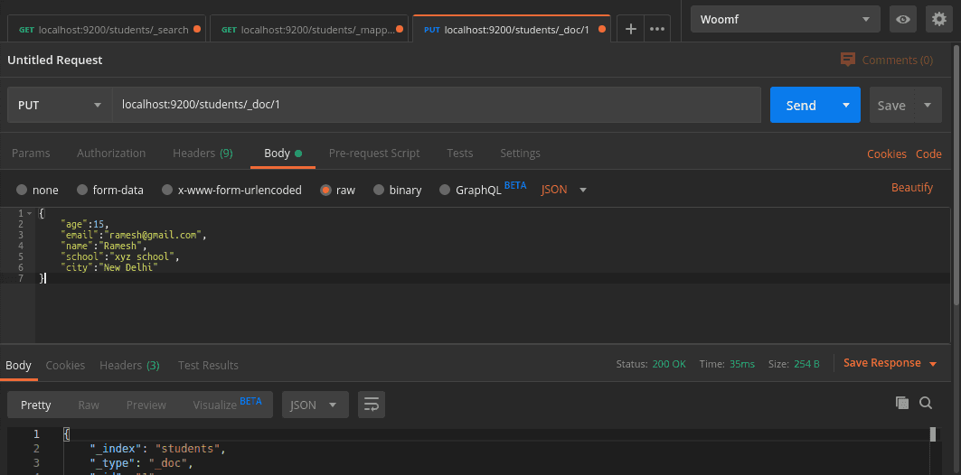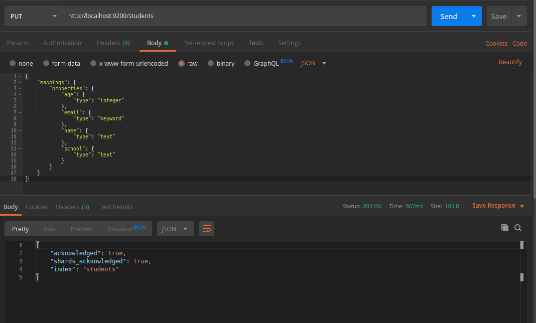 We can create an index document with a simple PUT request we can provide unique id at the end of the URL.