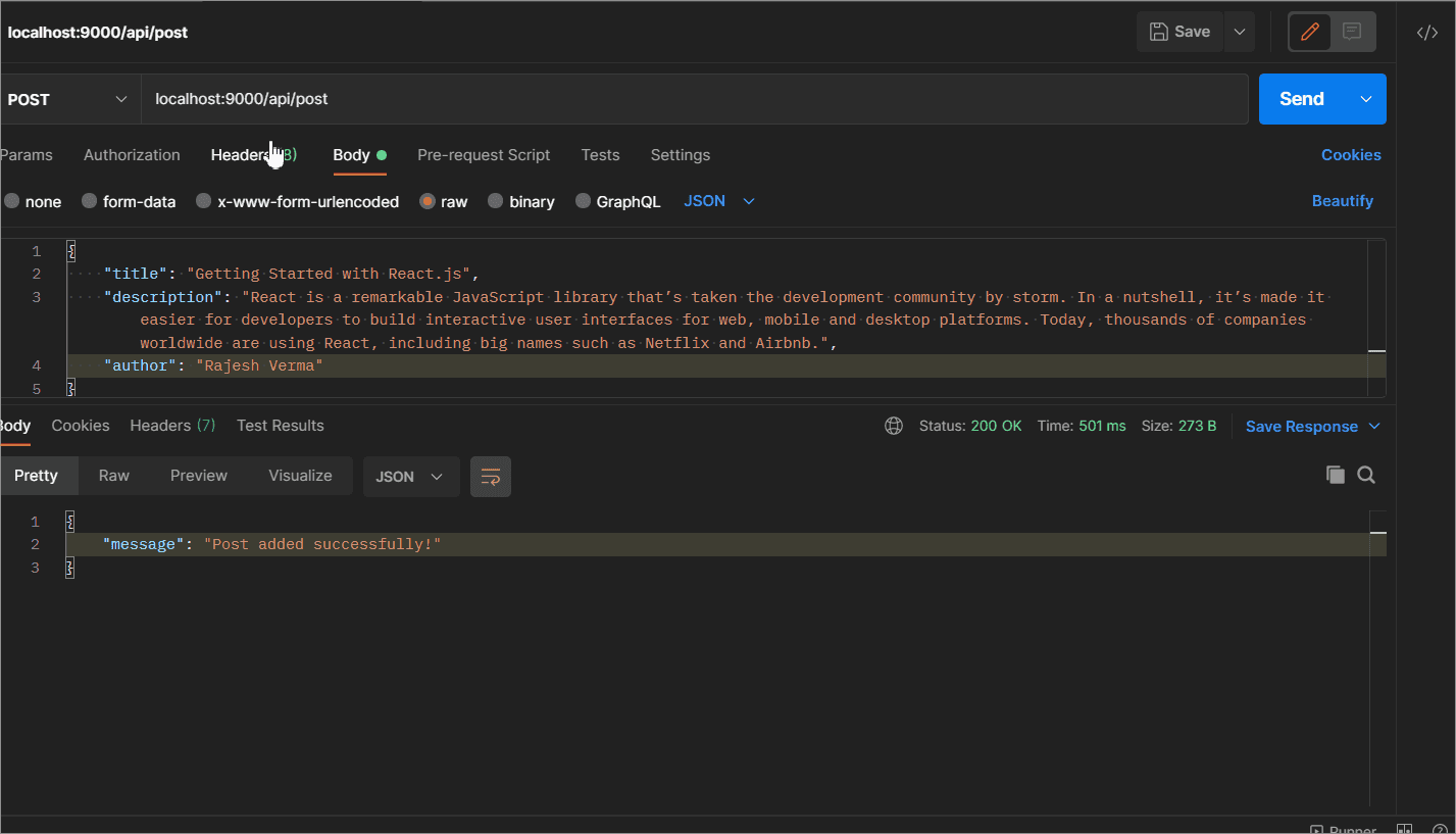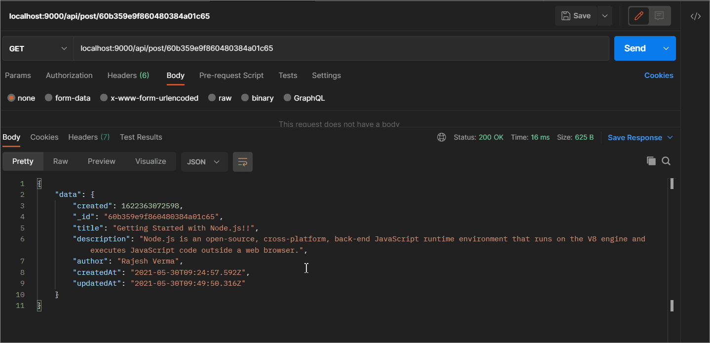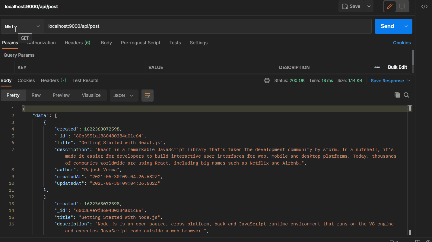 module.exports = postControllerAll the functions are pretty straightforward, we have pass req and res and tried to validate our request then we have performed the MongoDB operations with the help of mongoose.