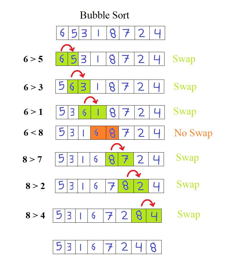 Pictorial Representation of how bubble sort will sort the given arrray.