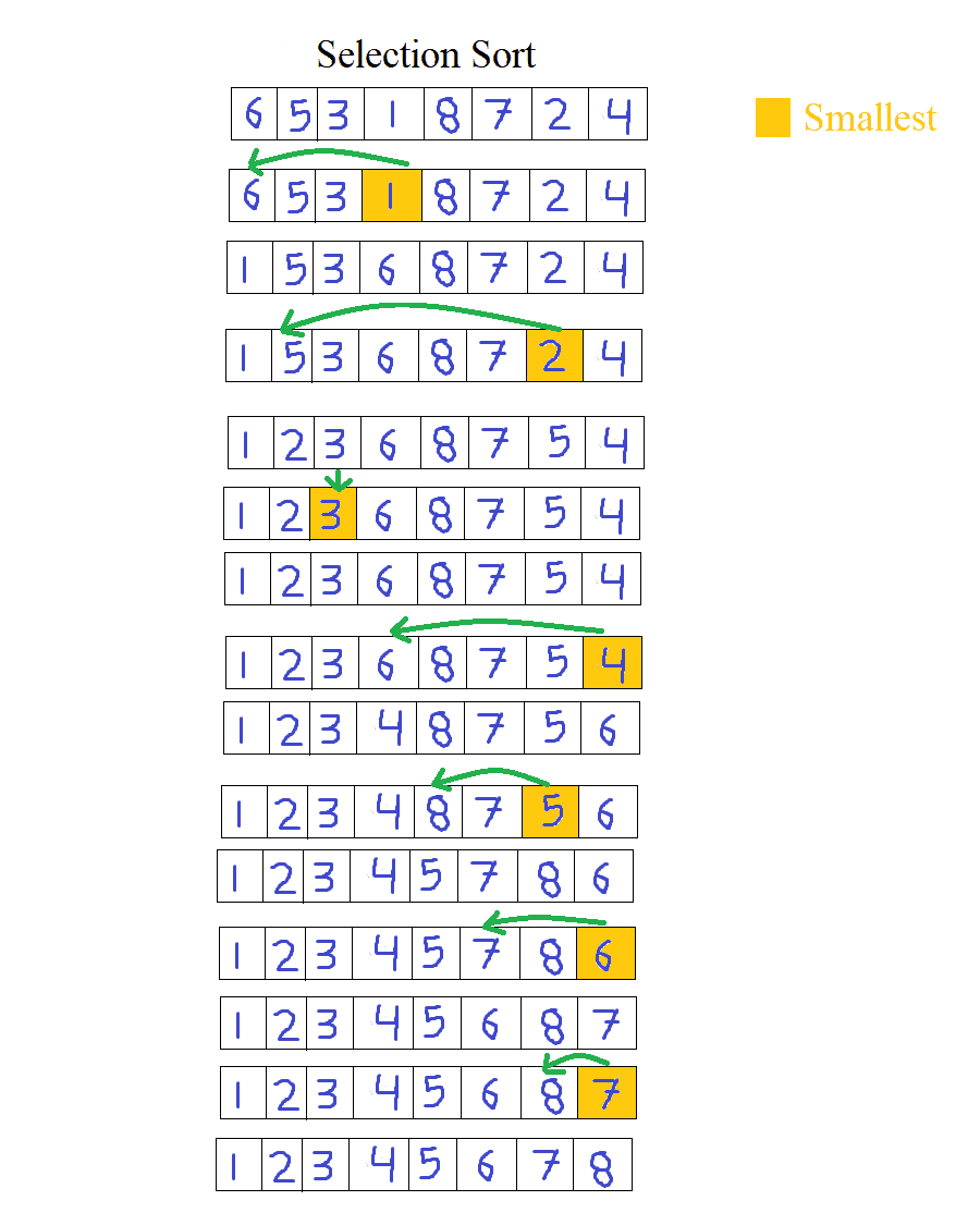We will repeatedly move to the next position and find the smallest after that we will replace the smallest element in the next position. until the array is completely sorted.